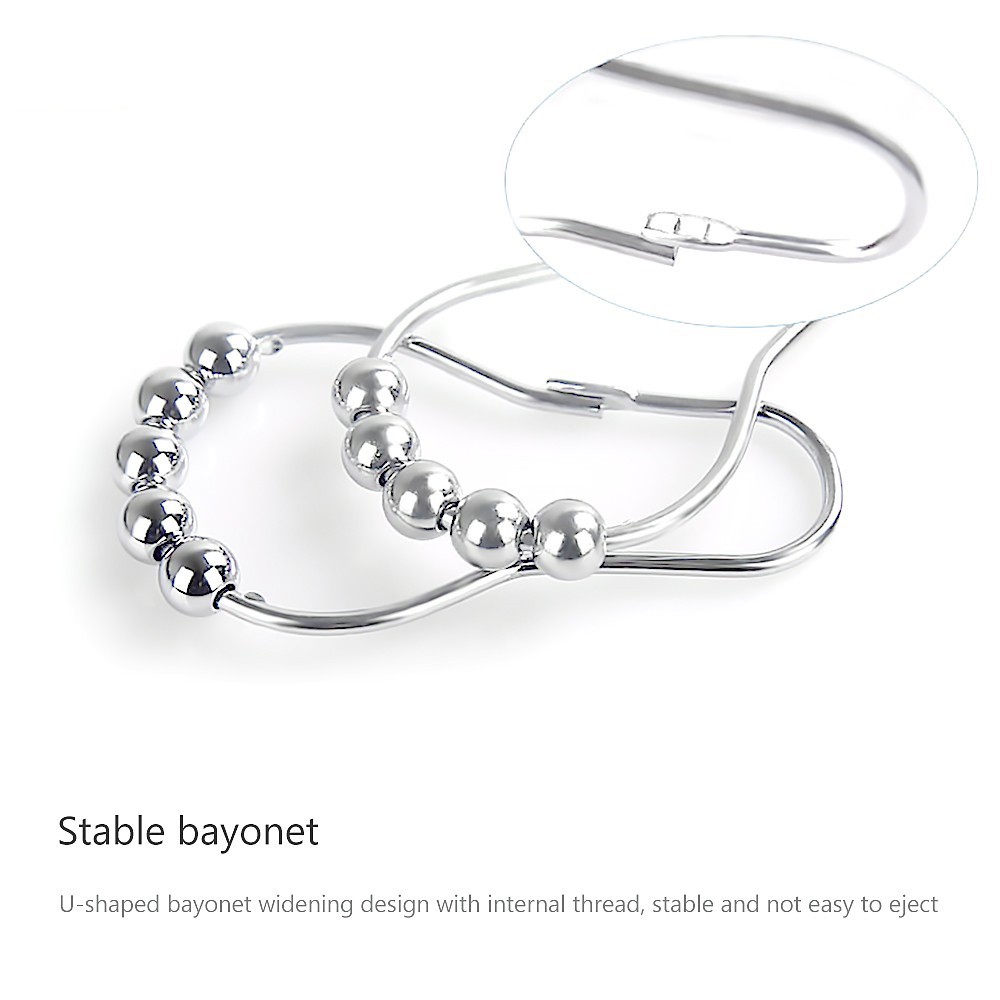 Móc treo rèm cho phòng tắm kiểu con lăn hỗ trợ trang trí cho phòng tắm, giải quyết các vấn đề móc treo rèm cho phòng tắm của bạn. Chức năng con lăn cho phép các móc treo rèm dễ dàng lướt qua thanh treo của bạn.