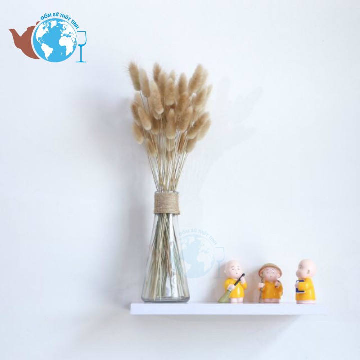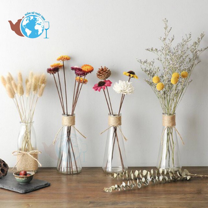 Sản phẩm chỉ gồm bình hoa thủy tinhn và phụ kiện dây quấn, không bao gồm hoa nắp gỗKích thước:
