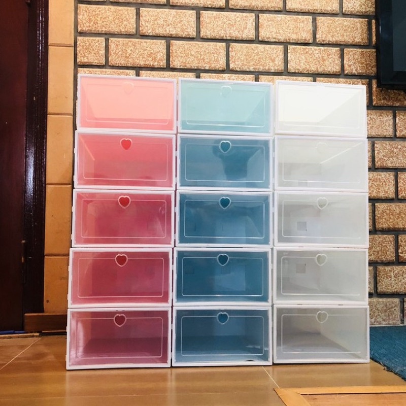 COMBO 15 HỘP ĐỰNG GIÀY NẮP NHỰA CỨNG GẤP GỌN LẮP RÁP THÔNG MINH NẮP TIM
