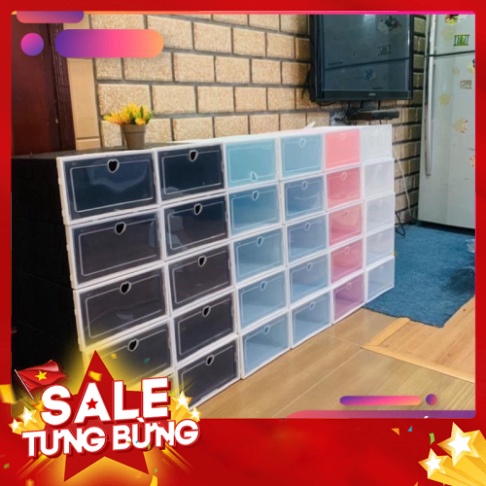 Combo 15 Hộp Đựng Giày Nhựa Cứng Size To, Tủ Đựng Giày Nhựa Cứng Nắp Trong Suốt Lắp Ghép Đa Năng nhiều màu sắc