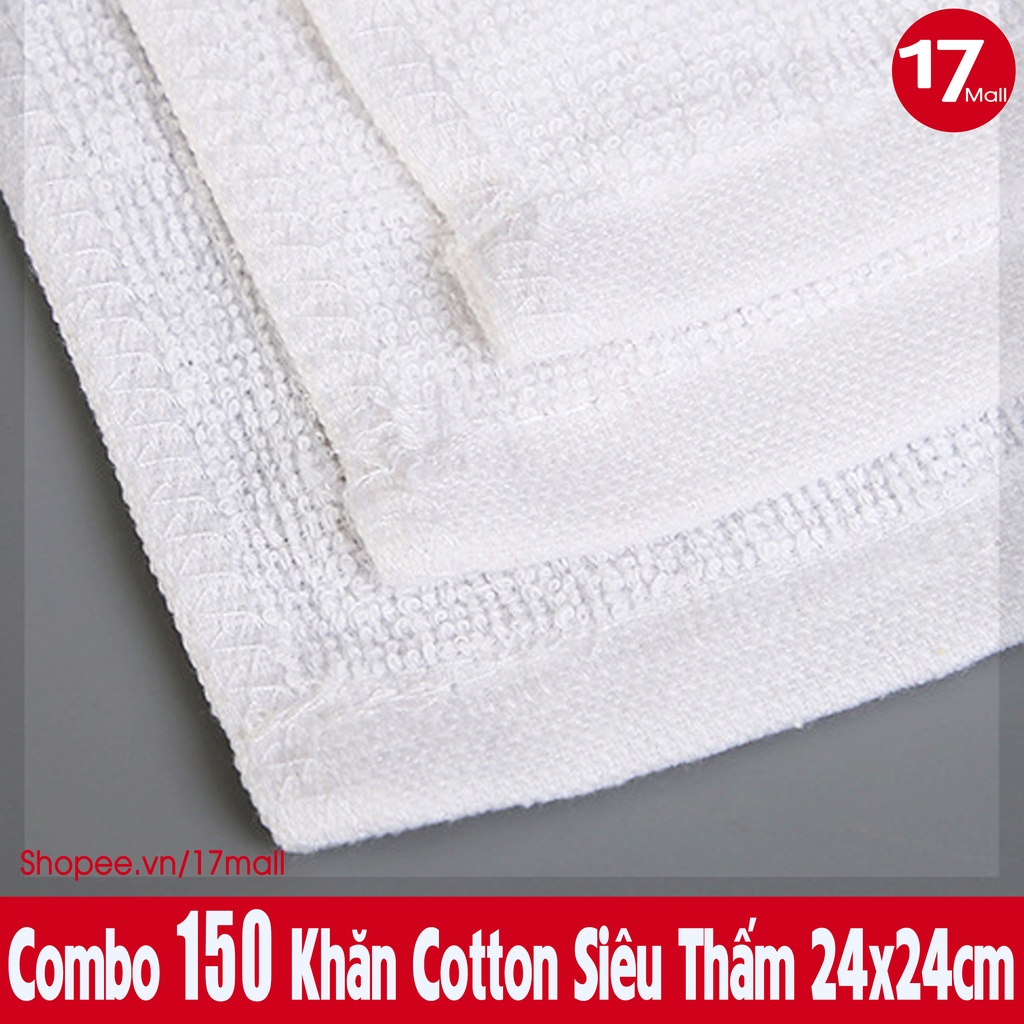 Combo 150 Khăn Lau Đa Năng Cotton Siêu Thấm Hút Màu Trắng 24x24cm, Khăn Lau Bếp 2 Mặt, Khăn Lau Bệnh Viện, Lau Xe, Lau Bát