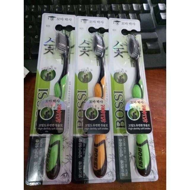 🍄Bàn chải đánh răng Bossi than tre hoạt tính sử dụng công nghệ Nano với các phân tử than hoạt tính phủ lên trên lông bàn chải giúp tiêu diệt, ngăn chặn sự sinh sôi, xâm nhập của vi khuẩn, giúp khử mùi hôi, ngăn ngừa các bệnh răng miệng. Cấu trúc lông bàn chải 2 tầng (sợi tròn và sợi chỉ tơ) giúp chải răng sạch hơn, Massage nướu, nhẹ nhàng loại bỏ mảng bám cứng đầu.