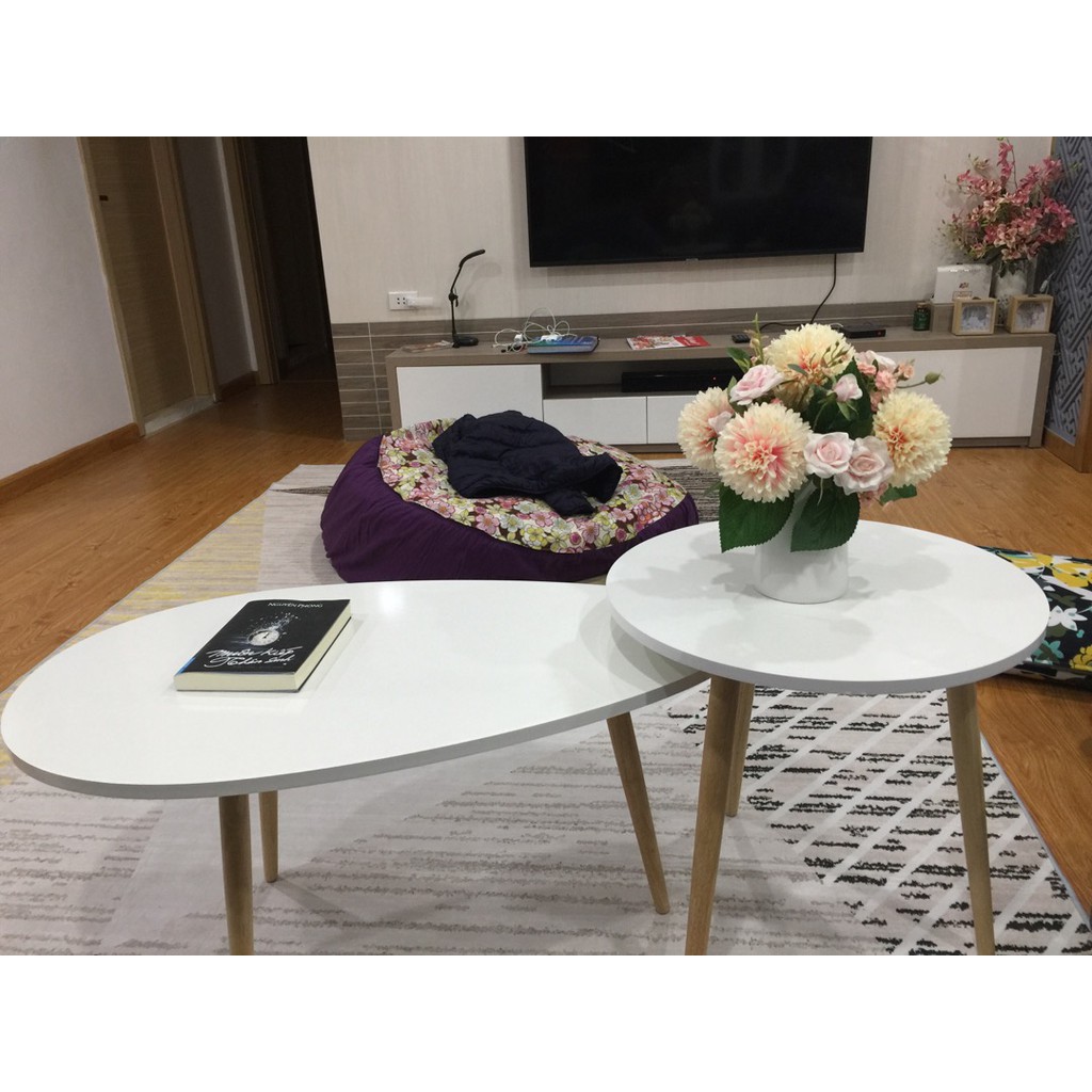 Nhà cửa & Đời sống > Nội thất > Bàn || Combo 2 bàn trà sofa hiện đại màu Trắng GP55.01+BT50M.01 chân gỗ sồi phòng kháchCòn hàng