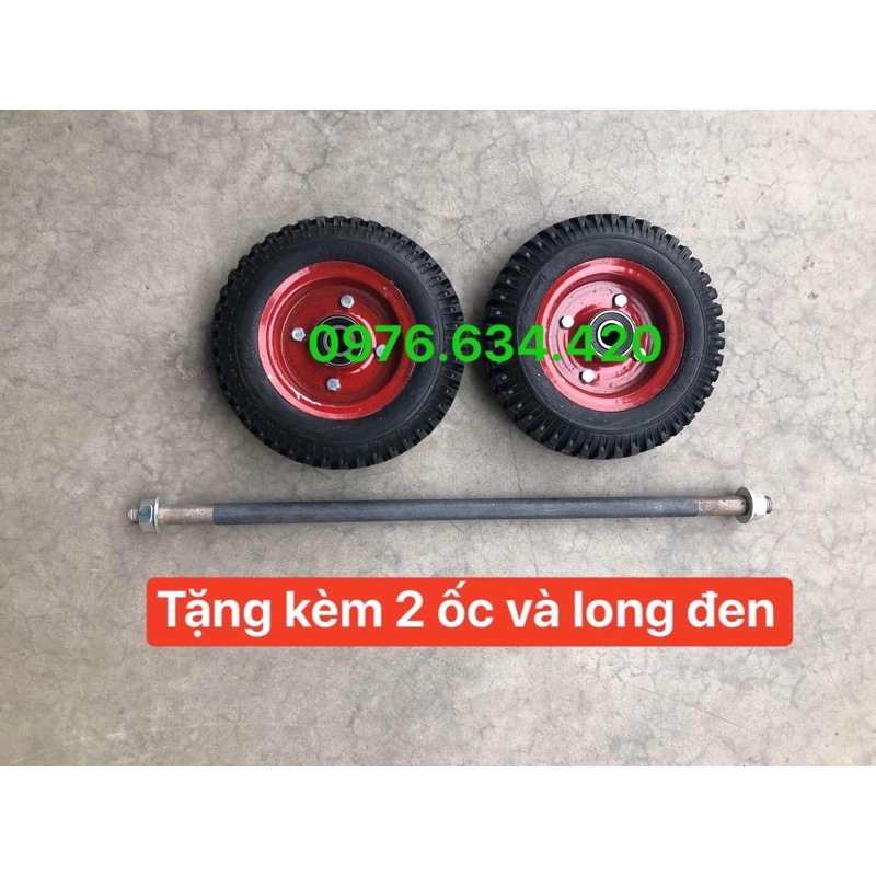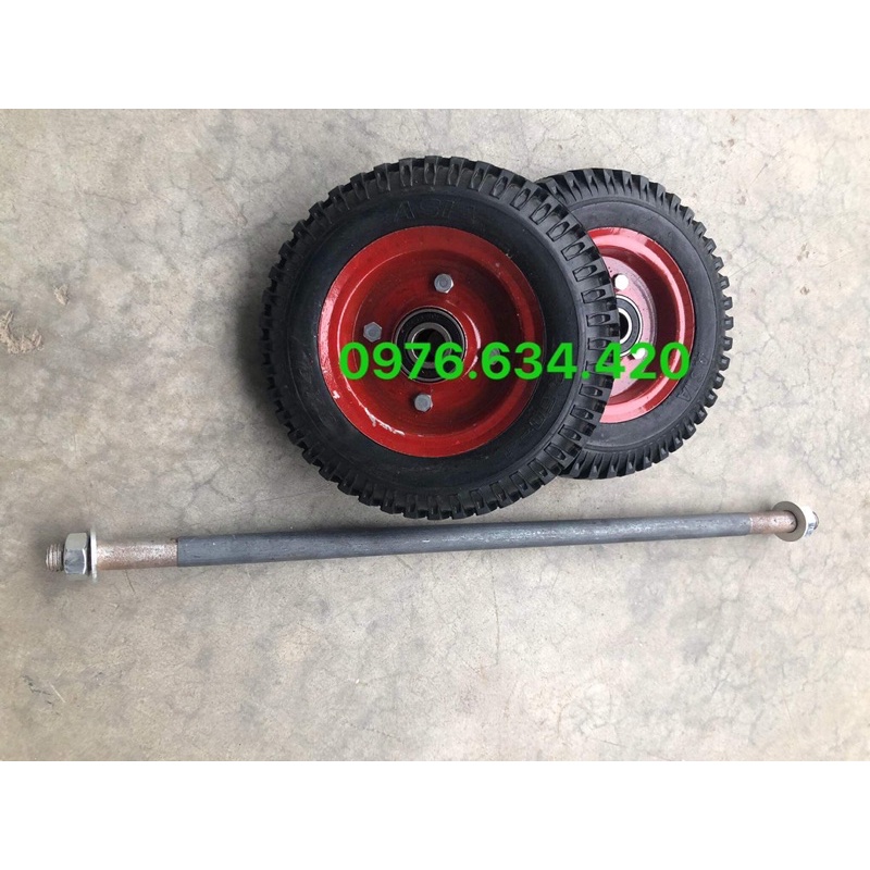 Combo 2 bánh xe đẩy đường kính 20cm kèm trục bánh xe 17ly dùng để thay thế và chế tạo xe đẩy hàng, xe kéo tặng kèm ốc
