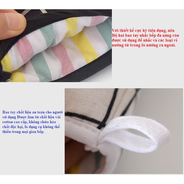 Giới thiệu Combo 2 bao tay vải dày nhấc nồi, độ bám cao, cách nhiệt cao chống nóng, màu ngẫu nhiên
