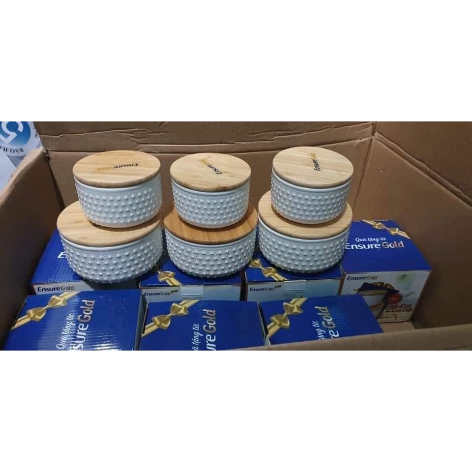 👍Nắp gỗ rất kín, thố sứ dày đẹp, thiết kế tinh tế. Dùng đựng kẹo, omai, hạt,...đều xinh ạ