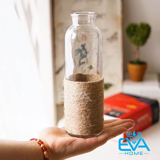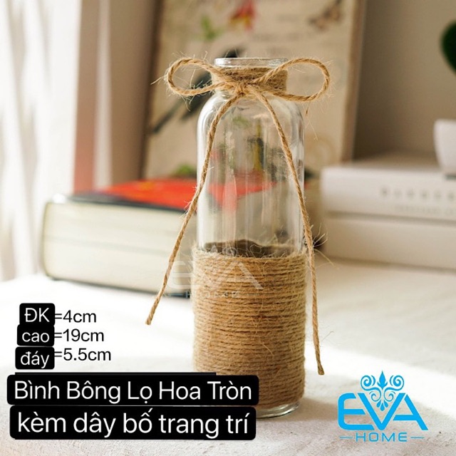 Combo 2 Bình Bông Lọ Hoa Thủy Tinh Tròn Và Vuông Tặng Kèm Dây Bố Trang Trí