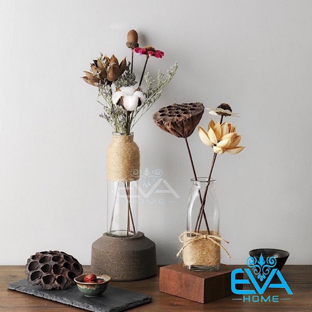 - Bộ sản phẩm gồm : 2 lọ hoa thuỷ tinh Tròn và vuông , 2 Mét Dây Bố Trang Trí