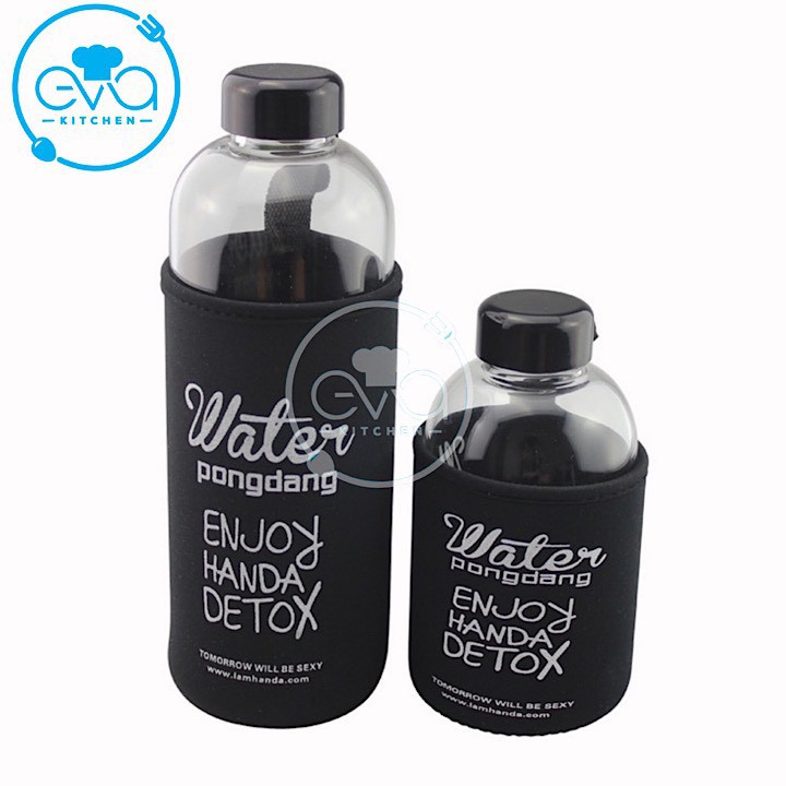 - Bộ sản phẩm gồm : 2 Bình Nước Thủy Tinh Pongdang Enjoy Detox 600ml và 1000 ml kèm vỏ bọc cách nhiệt .