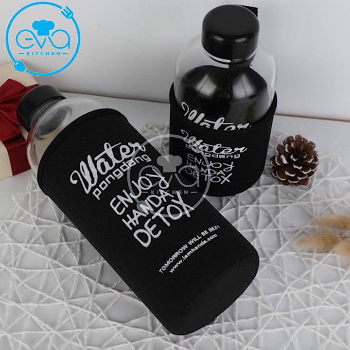 Giới thiệu Combo 2 Bình Đựng Nước Thuỷ Tinh Detox 1000 Ml Và 600 Ml Kèm Vỏ Bọc Vải Neoprene