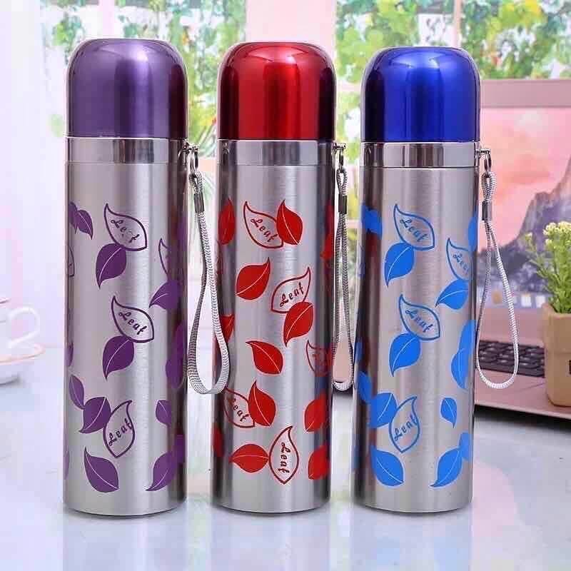 BÌNH NƯỚC GIỮ NHIỆT 500ML- Bình nước giữ nhiệt có thiết kế ruột và vỏ đều bằng inox dầy. lớp vỏ bên ngoài được phủ lớp nhũ chống gỉ. có dây quai cầm tay.