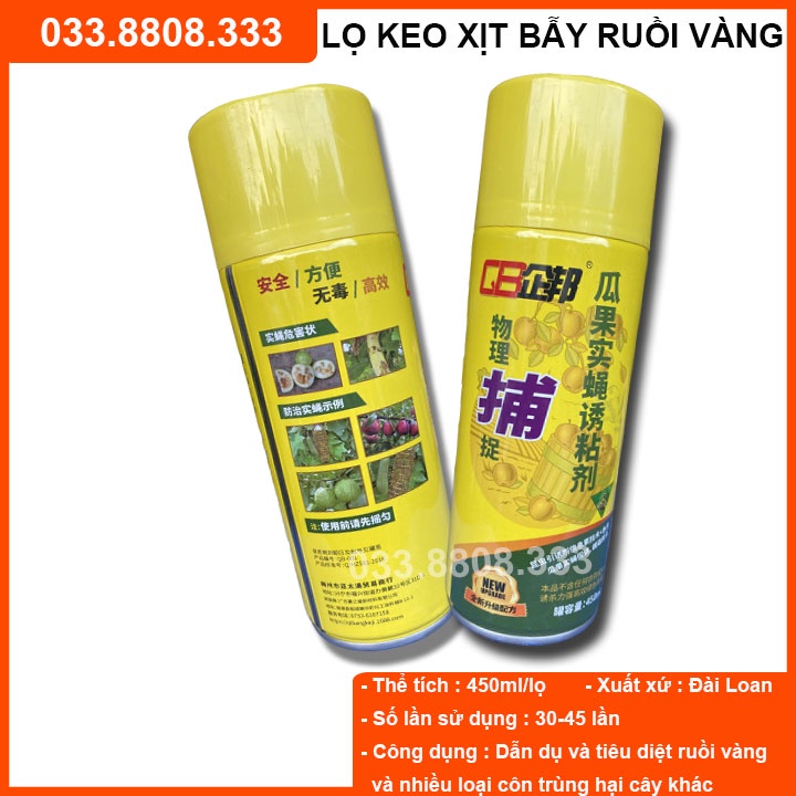 Chai xịt ruồi vàng và côn trùng được sử dụng để tiêu diệt các loài côn trùng gây hại và các loại ruồi vàng gây hại cho cây trồng. Sản phẩm tiêu diệt nhanh và hạn chế gây hại của ruồi đực và ruồi cái cao tăng sản lượng và chất lượng rau quả thu hoạch.