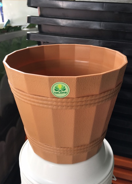 - Chậu Tròn Giống Thùng Gỗ Chuyên trồng cây trang tri để bàn.