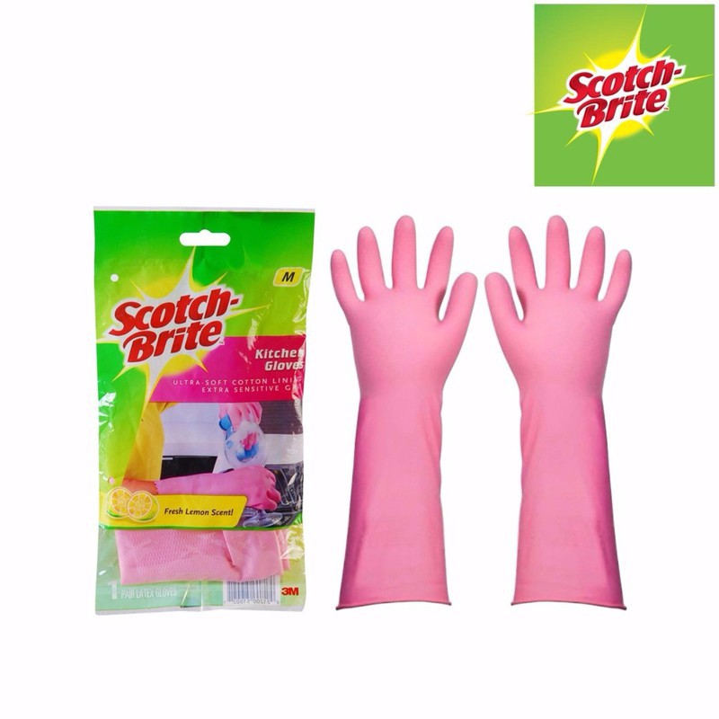 - Găng tay gia dụng cao cấp hương chanh cỡ lớn Scotch-Brite (Hồng) bảo vệ tay khỏi các loại hóa chất và bề mặt tiếp xúc, được nhiều người nội trợ tin dùng khi rửa chén, giặt quần áo hoặc thực hiện các công việc vệ sinh gia đình khác.