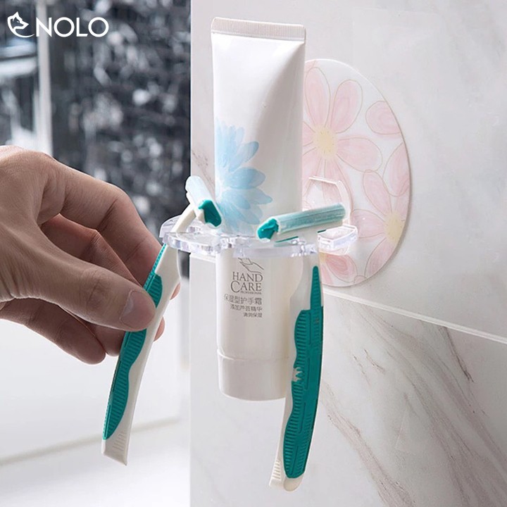 Giá đỡ thiết kế với 1 lỗ tròn giữa, giữ được kem đánh rang, sữa tắm và sữa rửa mặt dạng tuýp. Xung quanh lỗ tròn là 4 khe để treo bàn chải, dao cạo râu,…