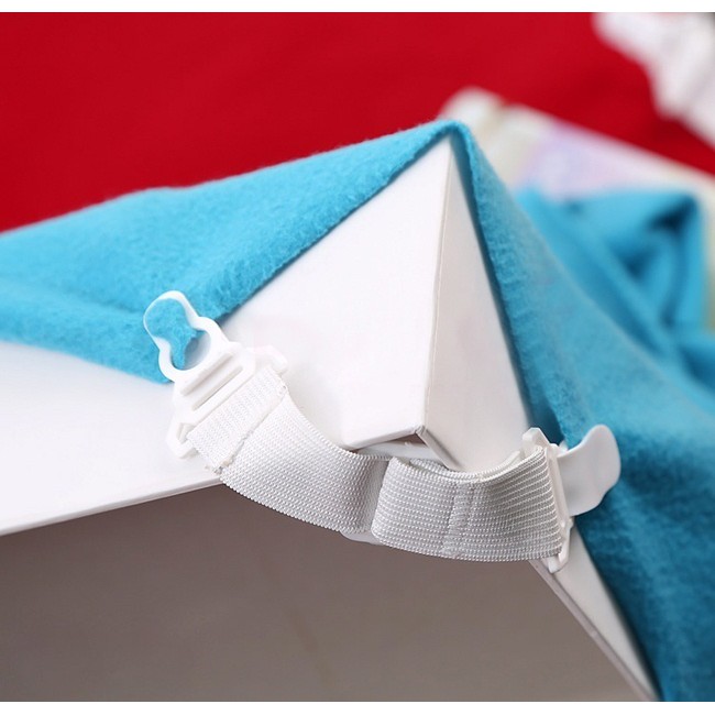 Chiếc kẹp được làm bằng chất liệu thun có độ co giãn tốt, đầu kẹp được làm bằng nhựa chắc chắn.- 4 chiếc kẹp gắn ở 4 đầu drap nệm sẽ giúp giữ ga luôn ở vị trí cố định, không bị xê dịch.