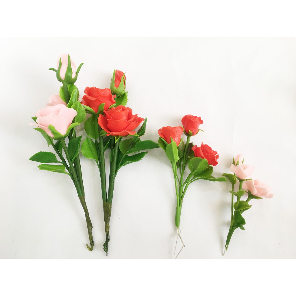 Combo 2 bụi hoa hồng đất sét nhật thái handmade size S-M-L nhiều màu