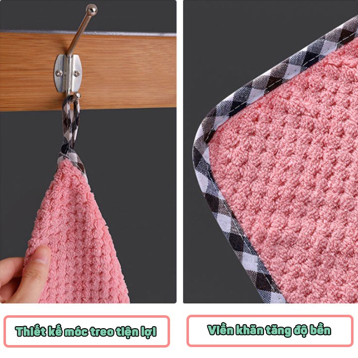 Combo 2 cái khăn lau tay nhà bếp đa năng có móc treo siêu thấm hút nước - nhiều màu