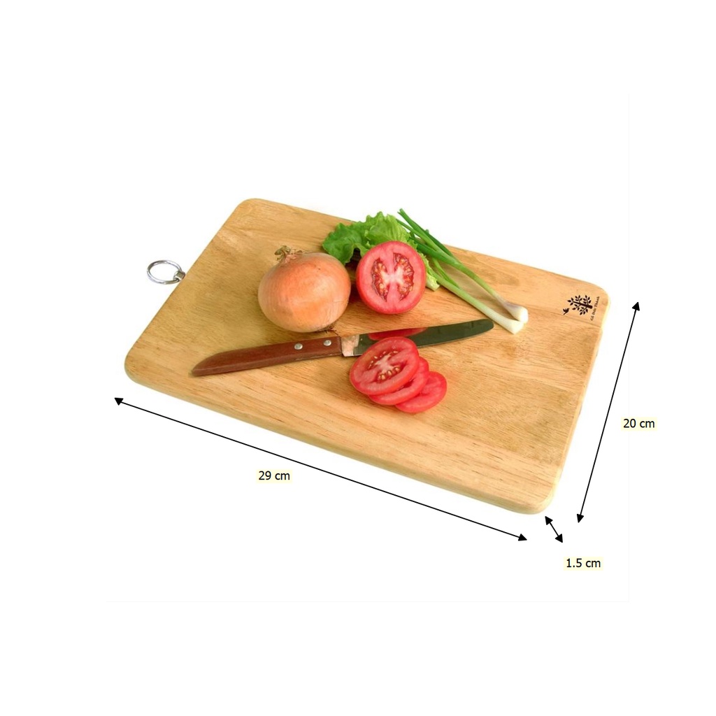 (Bộ 2 Cái ) Thớt Chữ Nhật Gỗ cao Cấp An Toàn Có Khoen Treo Inox, Kích Thước 29x20x1.5 cm - Gỗ Cao Su Bền Đẹp Sang Trọng