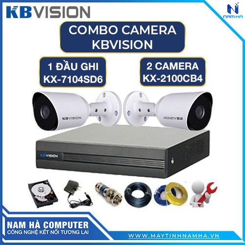 Cameras & Flycam > Camera giám sát > Camera giám sát kết nối internet || Combo 2 Camera 2.0MP FullHD kbvision + 1 Đầu ghi 7104SD6 H264+ HDD 500GB + Phụ kiện Chính HãngCòn hàng