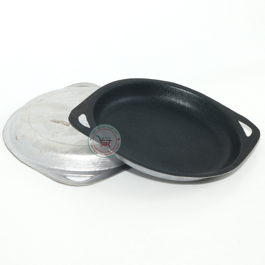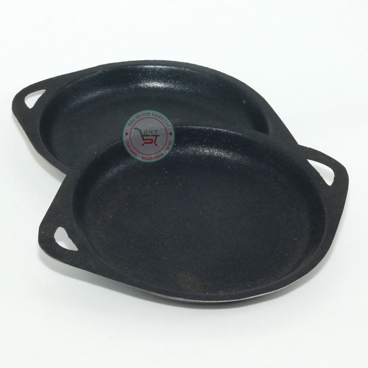 - Chảo được làm bằng chất liệu: hợp kim nhôm, tráng men chống dính, có quai cầm 2 đầu.