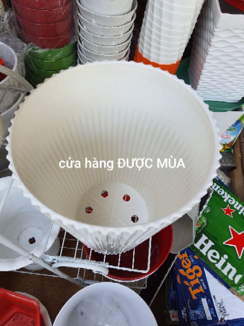 Chất liệu nhựa nguyên sinh dày dặn. Cực kỳ bền, màu trắng sứ, bóng đẹp dễ vệ sinh. Phù hợp mọi loại cây trồng.