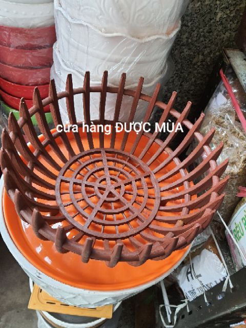 Bộ 2 cái chậu nhựa kiểu giả gỗ trồng lan.Mẫu mới có chân đế, đặt dưới đất hay treo đều được.
