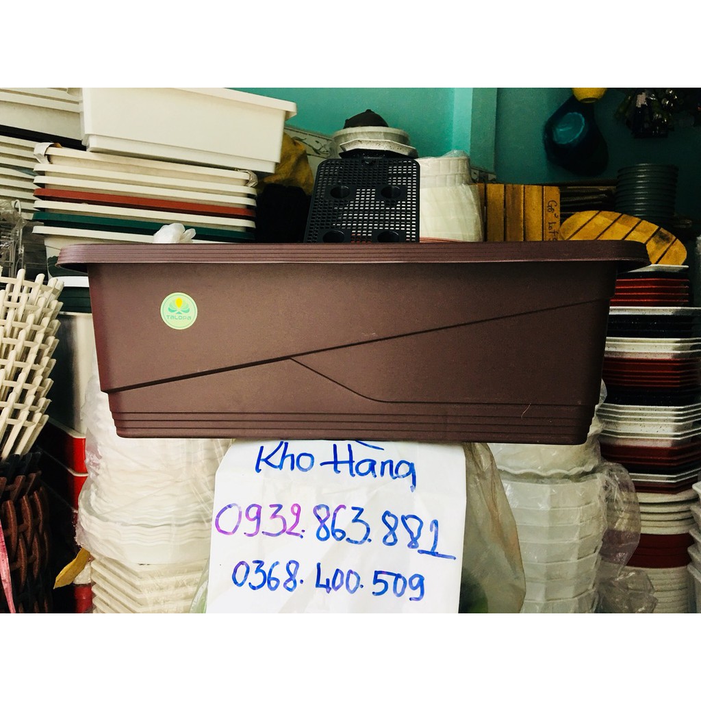 TALOPA 48: dài 48 x rộng 20 x cao 16cm (chậu thông minh lỗ bên hông,có nút bít lỗ khi cần)