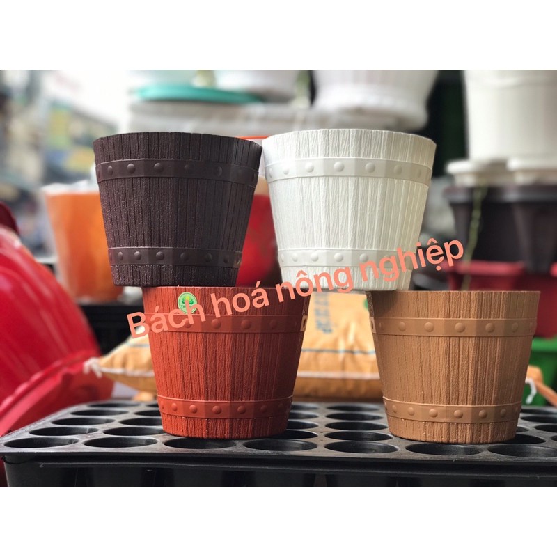 combo 2 chậu nhựa giả thùng gỗ size 17cm x 14cm