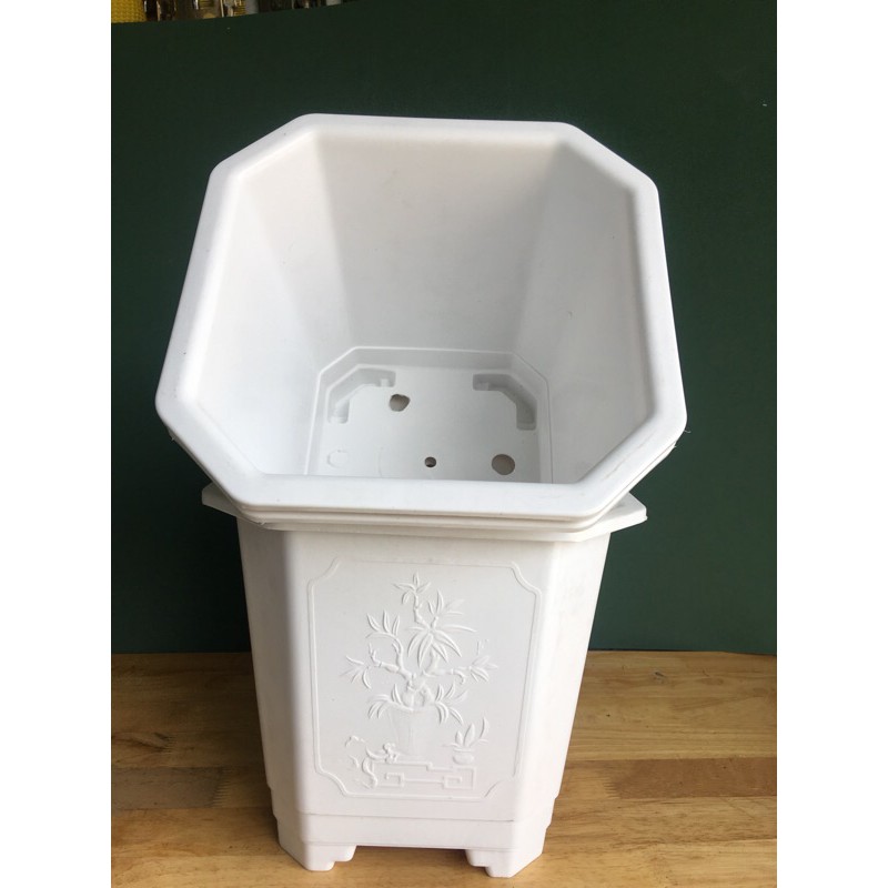 Đặc điểm nổi bật+ Chậu Vuông Nhựa Trắng Tinh được làm bằng chất liệu nhựa Dẽo cao cấp, rất chắc chắn, thời gian sử dụng bền lâu. ĐẶC BIỆT có 4 chân cao dễ thoát nước.