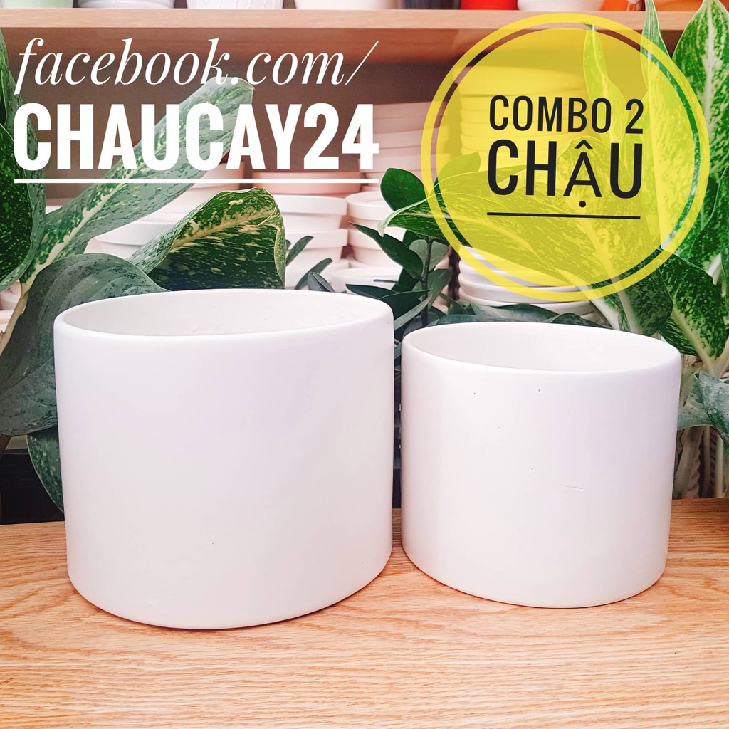Nhà cửa & Đời sống > Làm vườn > Chậu cây || COMBO 2 chậu sứ trụ trơn lớn và nhỏ để trồng cây cảnh nội thất, cây cảnh để bàn, sen đá, xương rồngCòn hàng