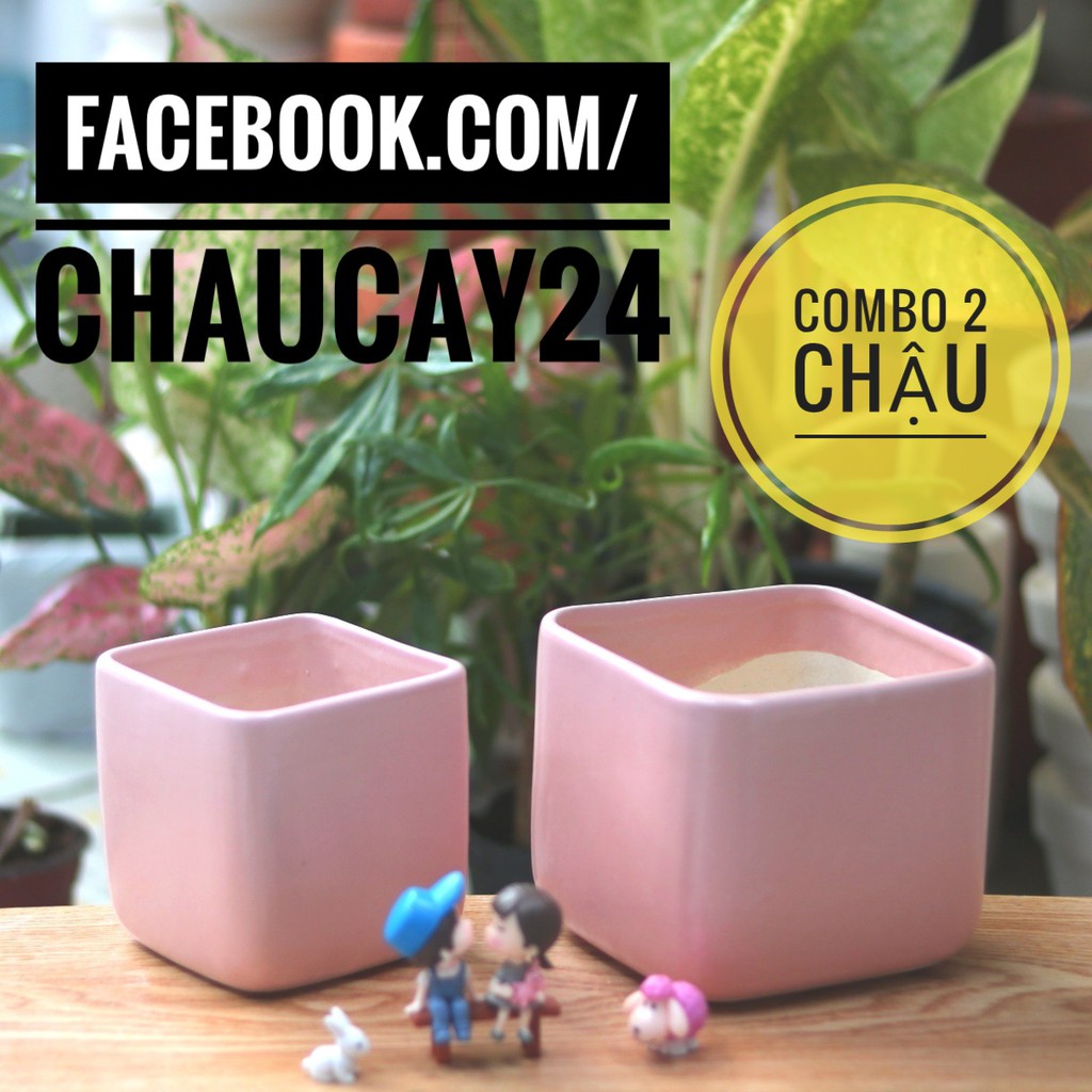 - COMBO bao gồm: 01 chậu vuông lớn (13x11 cm) và 01 chậu vuông nhỏ (10x10 cm).