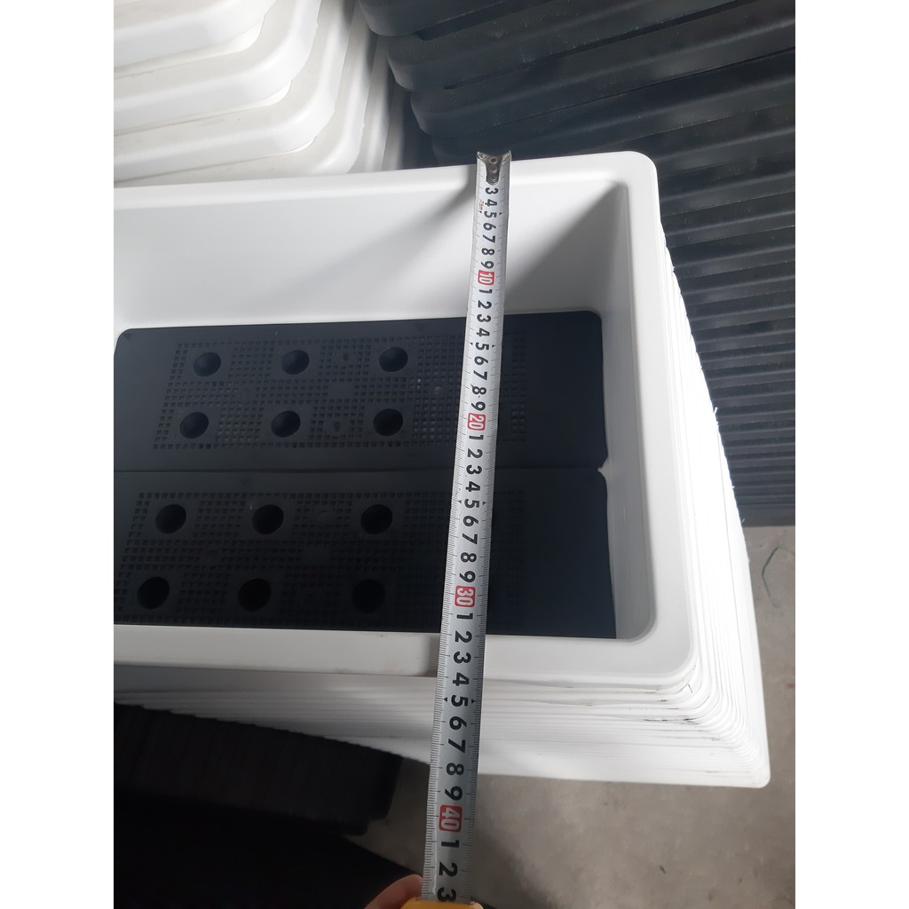 Chậu chữ nhật trồng cây loại to 48x35x16Chậu nhựa dài thông minh có lớp màng đáy thoát nước tốt và giúp đất tơi xốp, đồng thời trữ nước thừa giúp cây tự hút nước khi cần và giảm thời gian tưới cho cây.