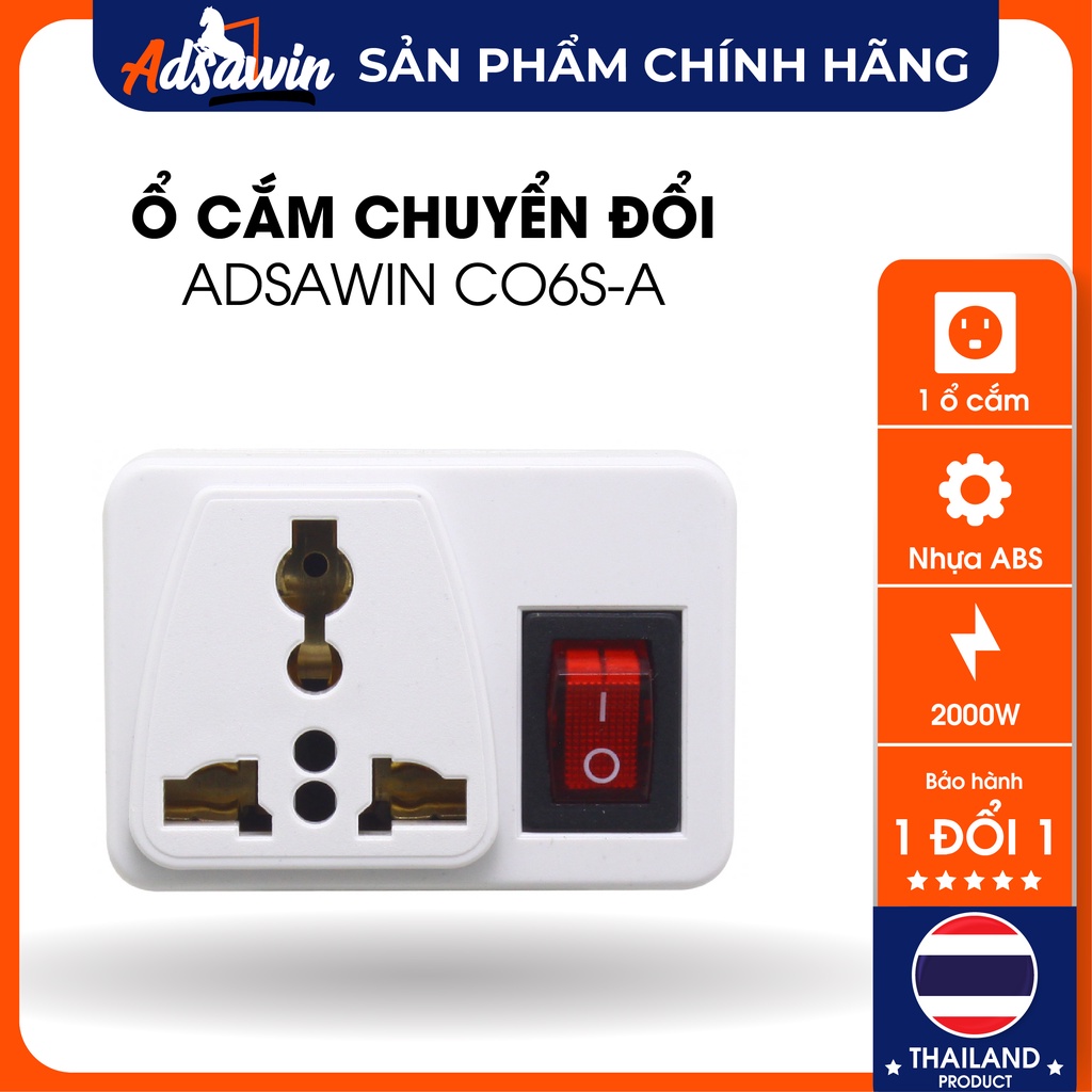 Phích cắm (Ổ cắm) TOSHINO CO6S-A THAILAND chuyển đổi 3 chấu sang 2 chấu,công tắc tiện lợi,2000W,ABS Chống cháy.*Phích cắm (Ổ cắm) Chất liệu nhựa ABS cao cấp chống cháy,lõi đồng nguyên chất 100%