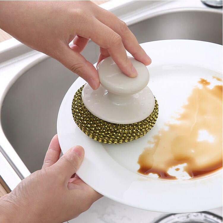 -Dụng cụ cọ xoong có tay cầm với cán làm từ nhựa với kích thước như một chiếc chổi cọ 7cm khá tiện ích khi rửa xoong nồi