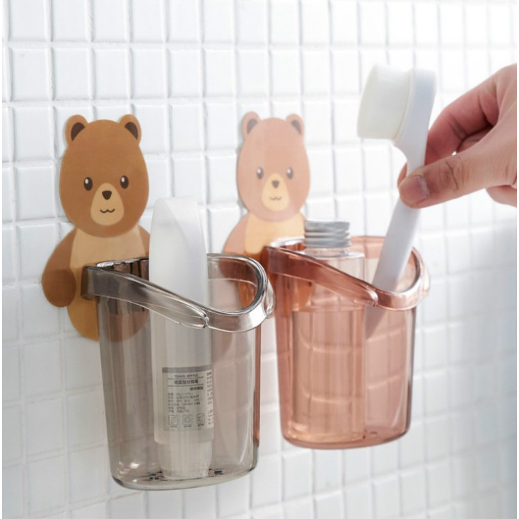 Combo 2 Cốc Đựng Bàn Chải Kem Đánh Răng Hình Gấu Dán Tường