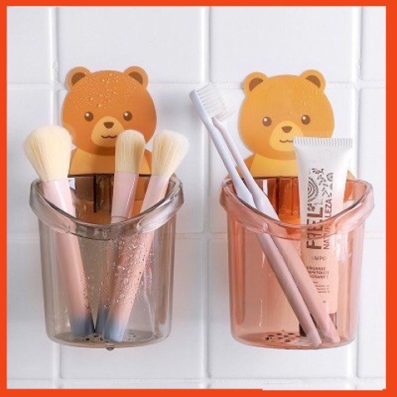combo 2 cốc gấu cắm bàn chải đánh răng gắn tường hình gấu.