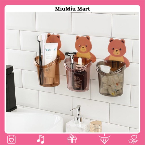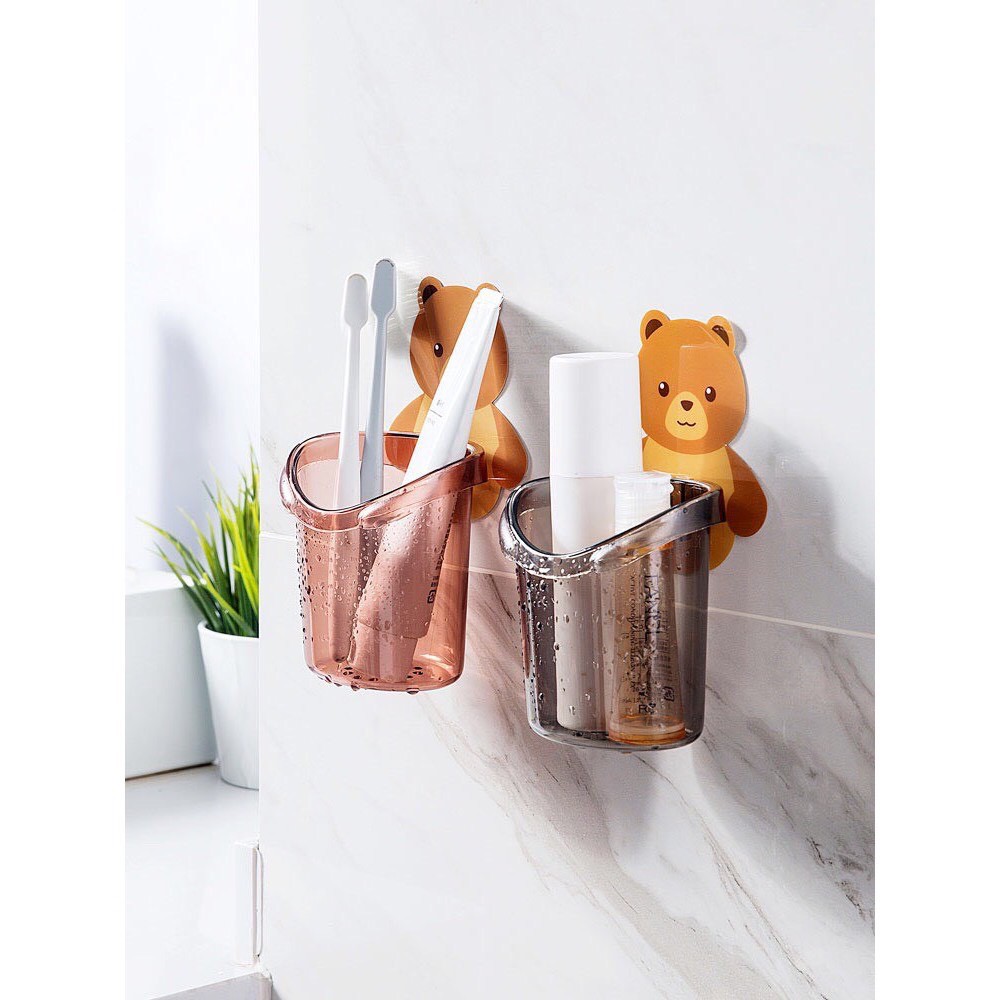 [ COMBO 2 ] Cốc gấu dán tường - Đồ đựng bàn chải kem đánh răng đa năng - MiuMiu Mart