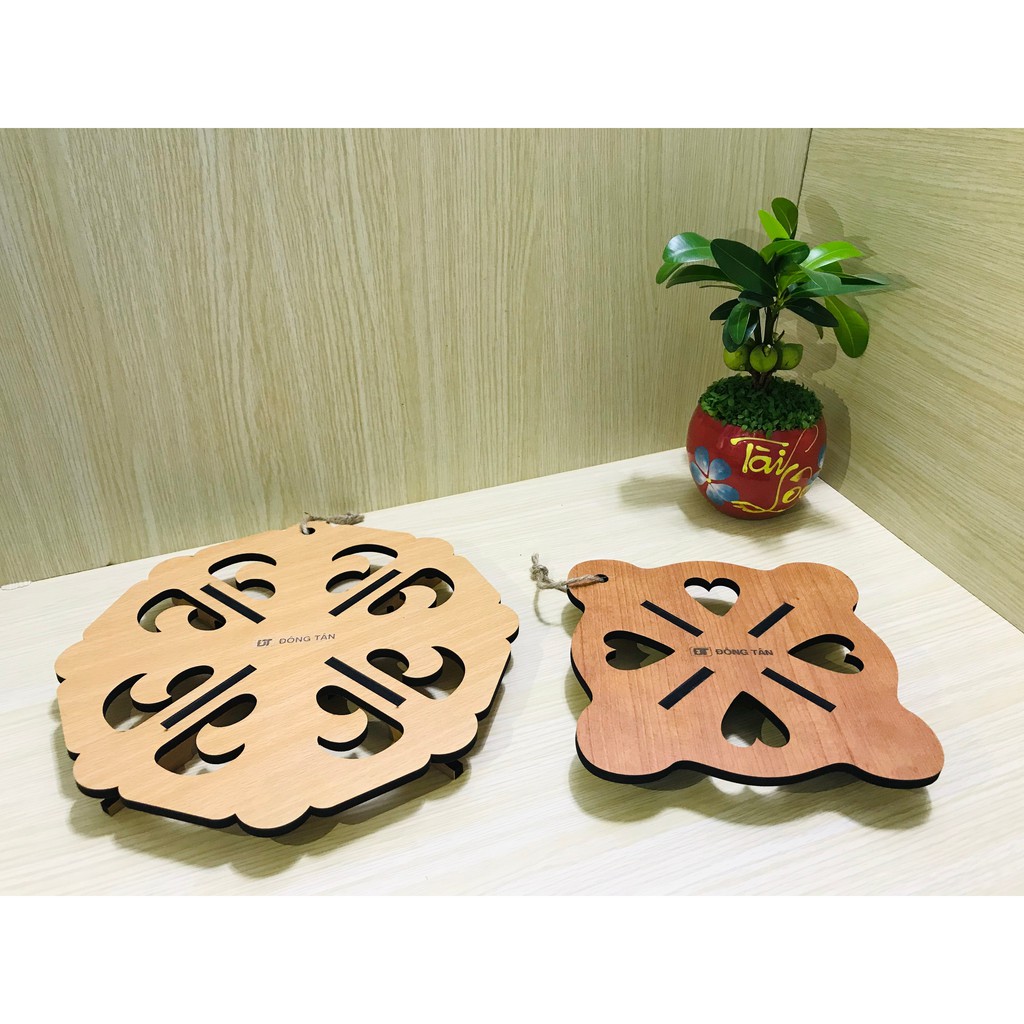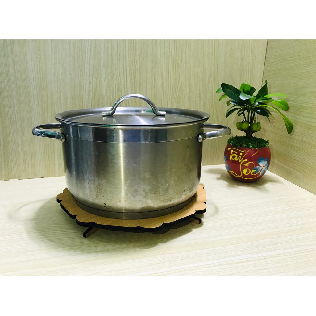 Combo 2 Đế Lót Nồi Bằng Gỗ Cao Cấp Có Chân Đỡ, Size Lớn, Cách Nhiệt, Chống Trầy Xướt, Bền Màu
