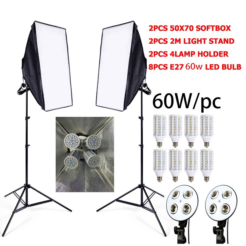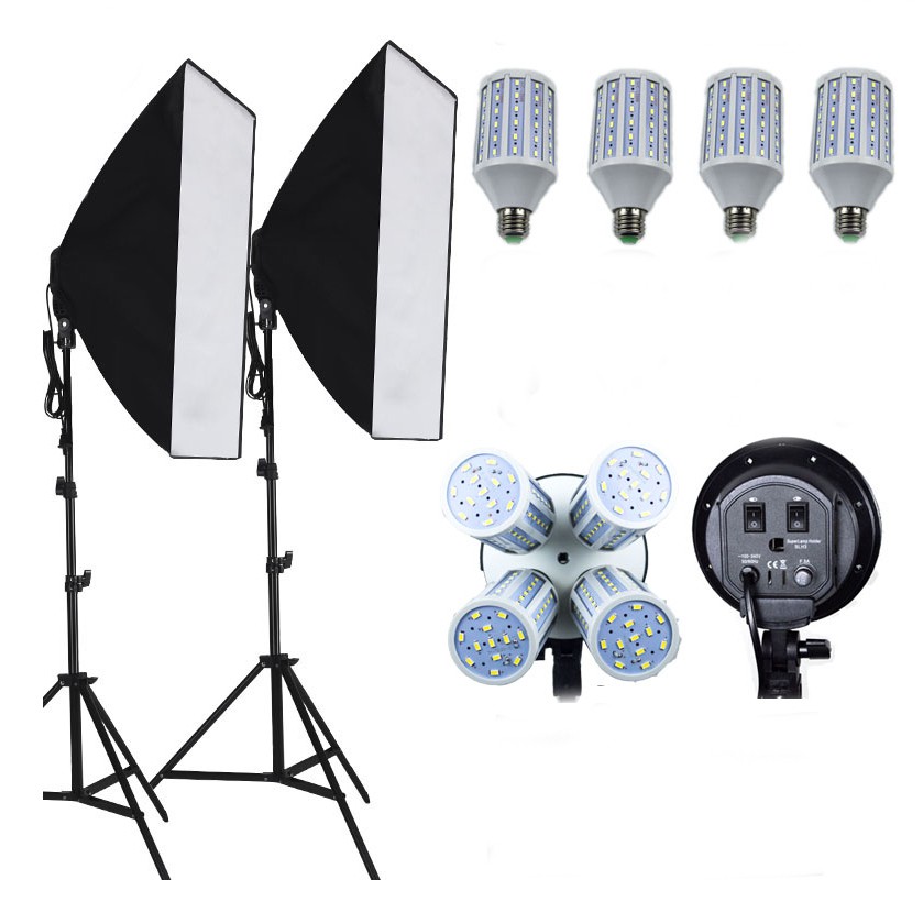 Giới thiệu Combo 2 đèn softbox chuôi 4 lõi sứ 50x70cm và 8 đèn Led 360 độ 480W có 2 chân đứng 2m