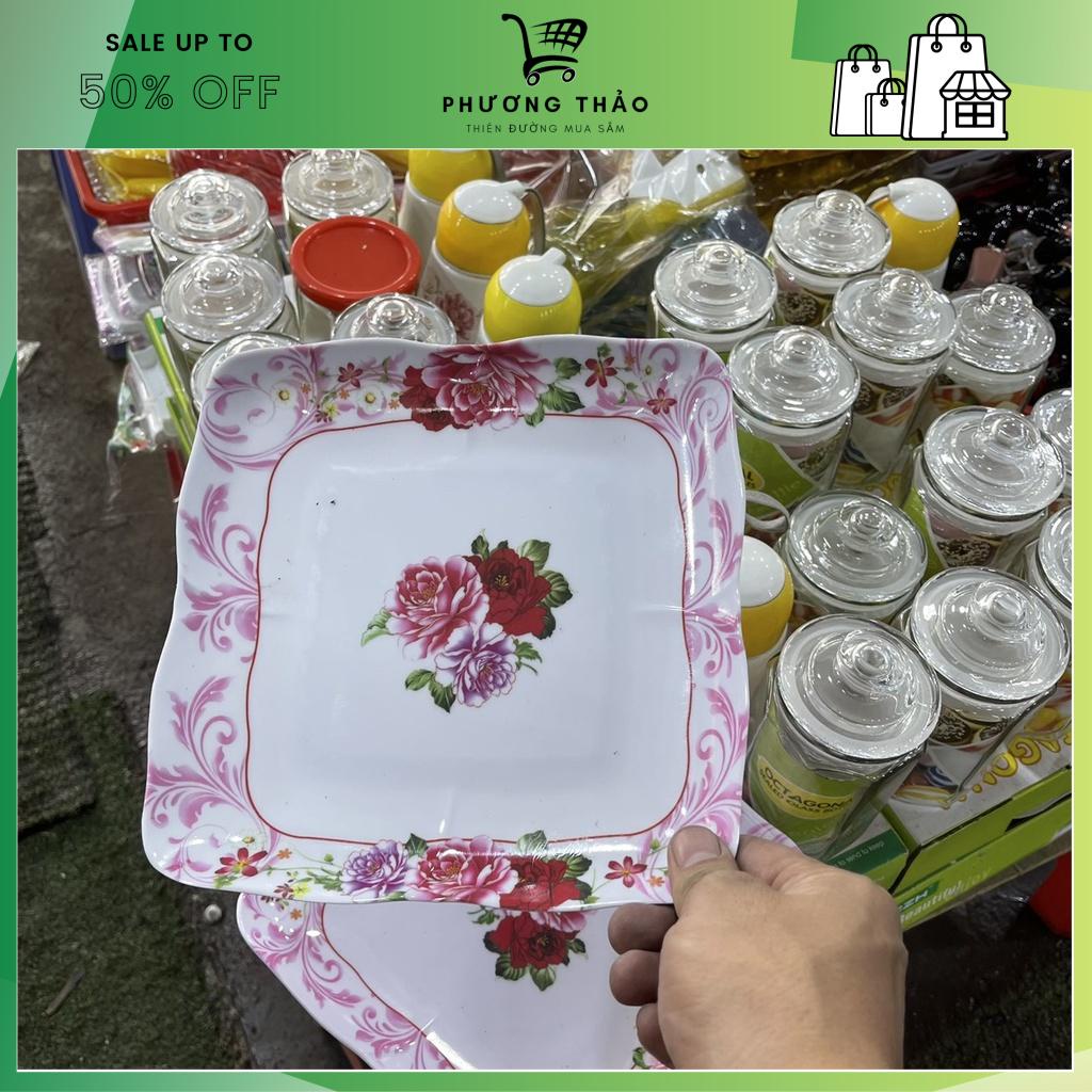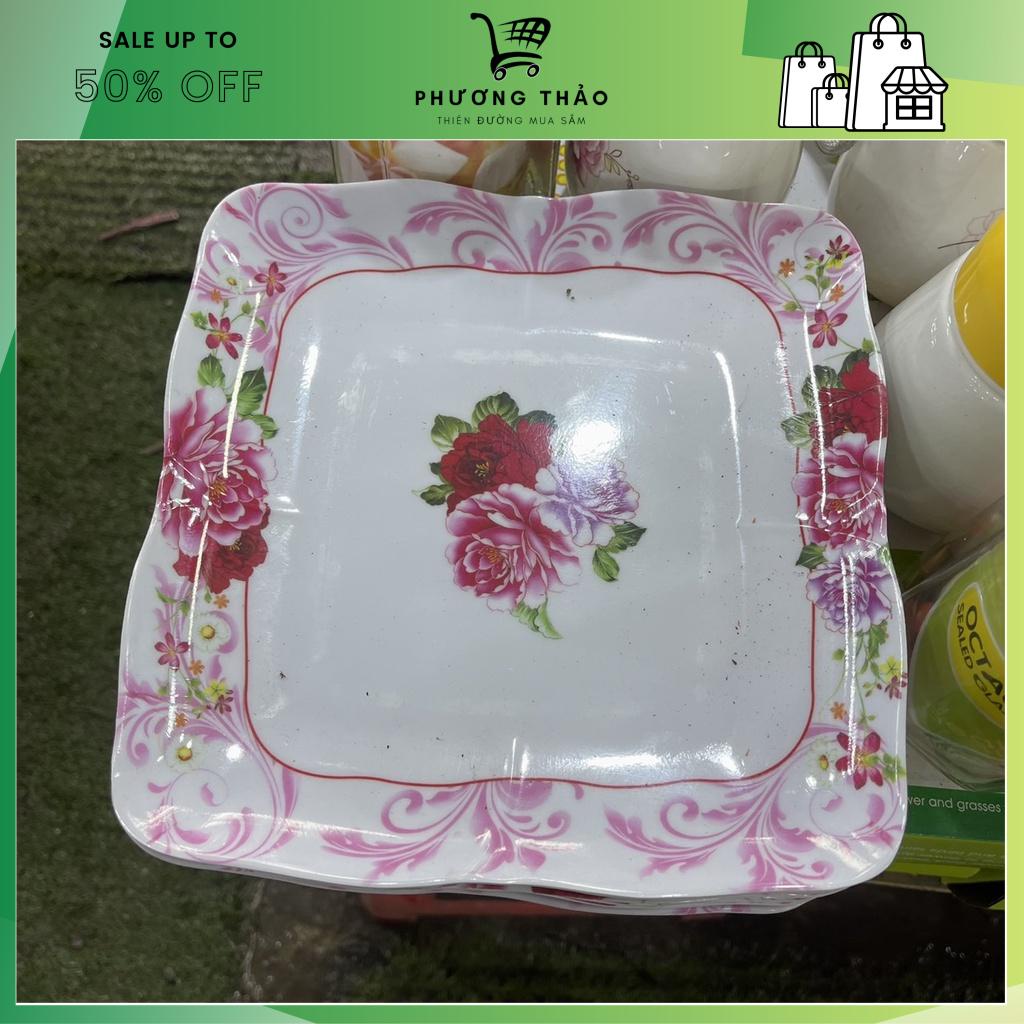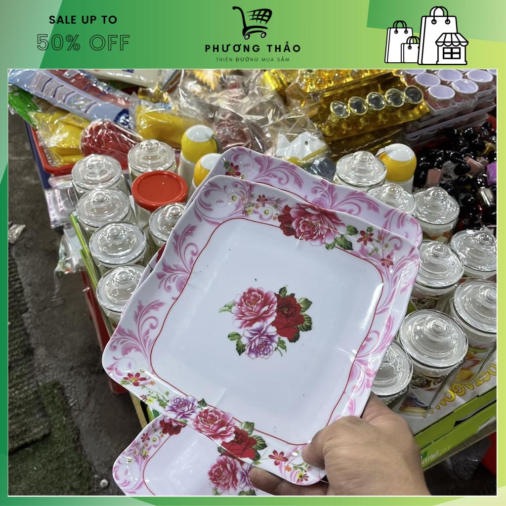 Combo 2 Dĩa nhựa vuông họa tiết hoa cổ điển Siêu Rẻ Giá Tốt
