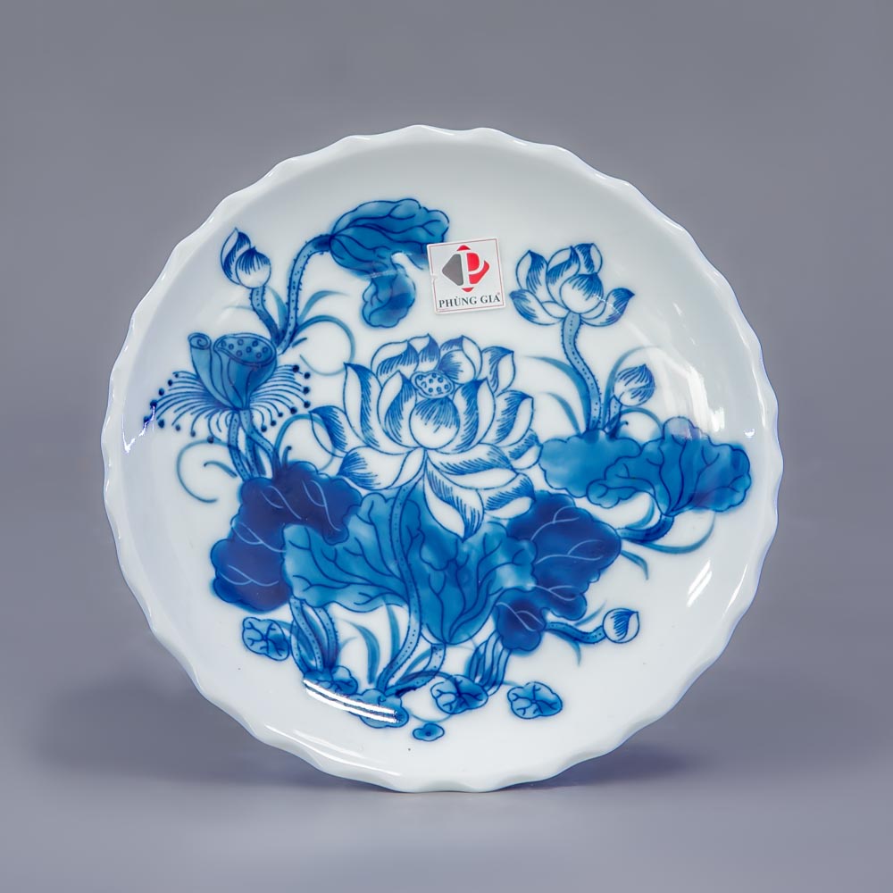 Nhà cửa & Đời sống > Bộ đồ bàn ăn > Dĩa || Combo 2 đĩa trầu cau men Lam Trắng Trơn họa tiết HOA SEN, đồ thờ cúng Phùng Gia - Gốm sứ Bát Tràng cao cấpCòn hàng