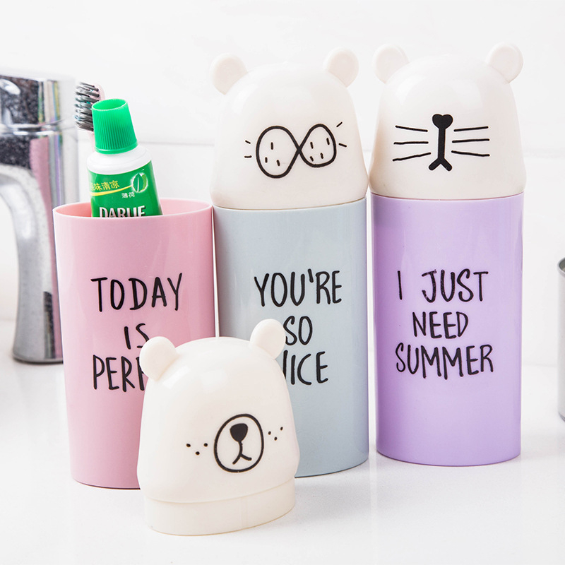 Nhà cửa & Đời sống > Đồ dùng phòng tắm > Kệ đựng bàn chải, kệ nhả kem đánh răng || Combo 2 dụng cụ đựng bàn chải hình gấu có nắp đậyCòn hàng