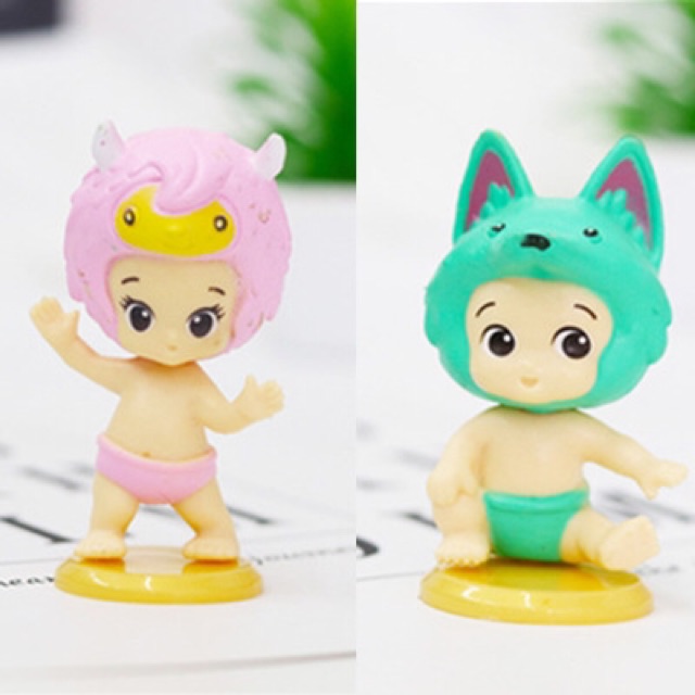 Combo 2 em bé đội nón thú trang trí bánh, phụ kiện sinh nhật