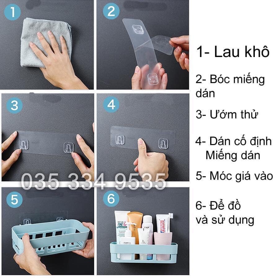 Combo 2 Giá kệ nhựa để đồ chữ nhật dán tường siêu chắc