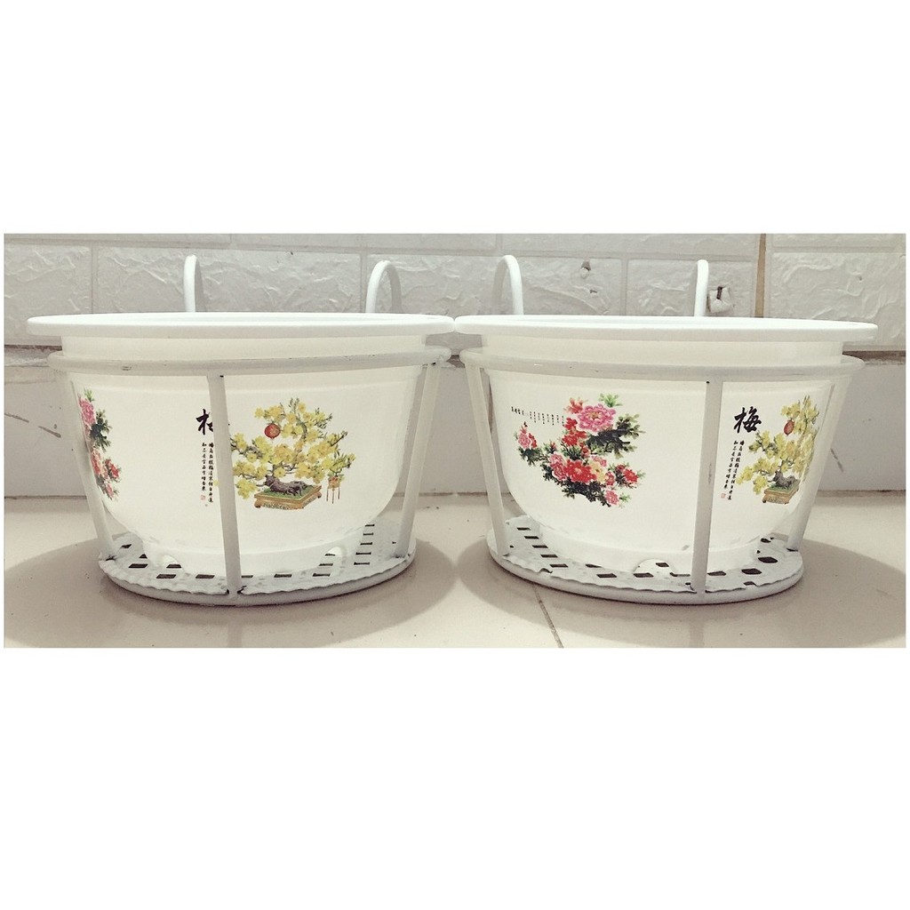 Nhà cửa & Đời sống > Làm vườn > Chậu cây || ComBo 2 GIỎ SẮT Treo Chậu Hoa Ban Công Hình Tròn - Màu Trắng + 2 Chậu Nhựa Trồng Hoa Cây Cảnh Bốn Mùa 250x170Còn hàng