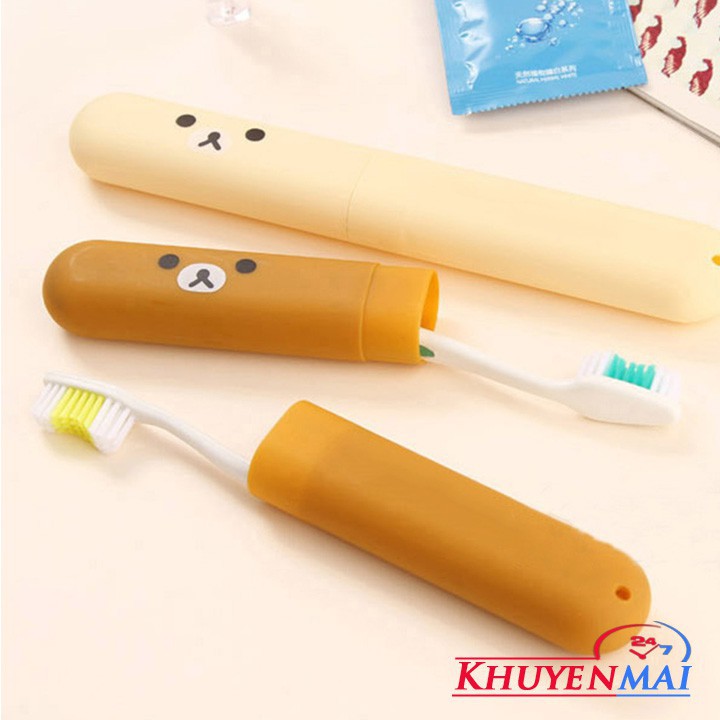 Ngoài hộp có in hình gấu, có thể đựng được 2 bàn chải đánh răng, dễ thương và bắt mắt;