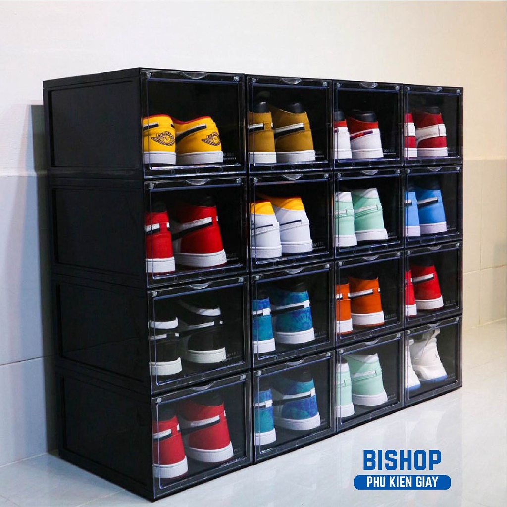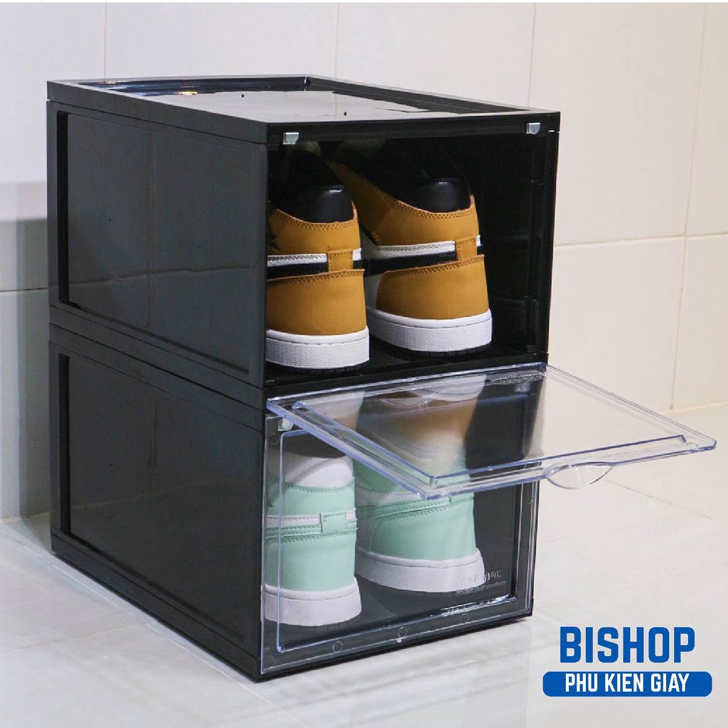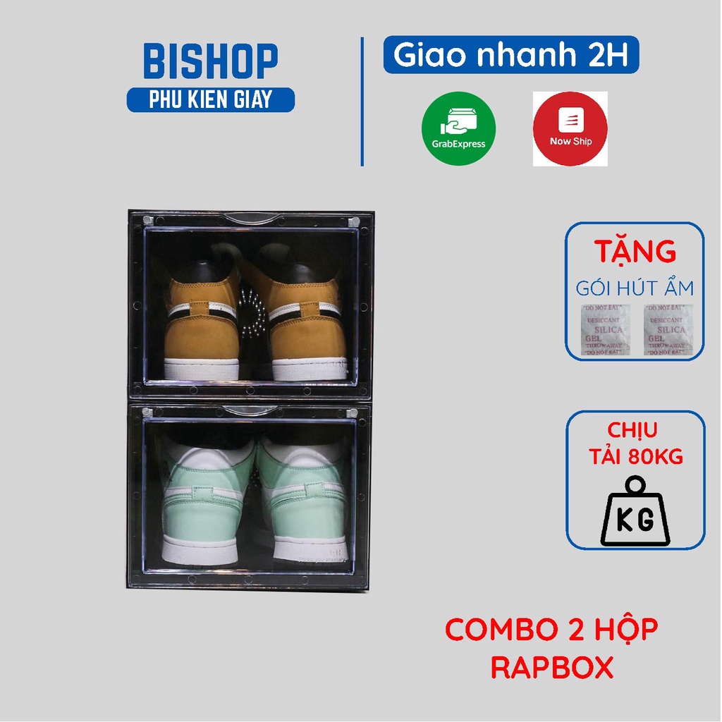 Giới thiệu Combo 2 Hộp Đựng Giày Rapbox Nhựa Cứng Trong Suốt Cửa Nam Châm Cao Cấp BISHOP