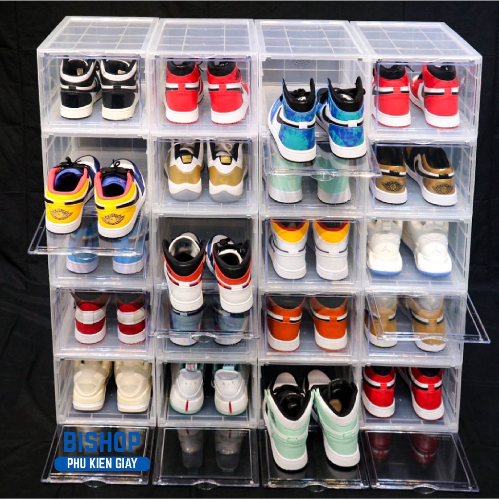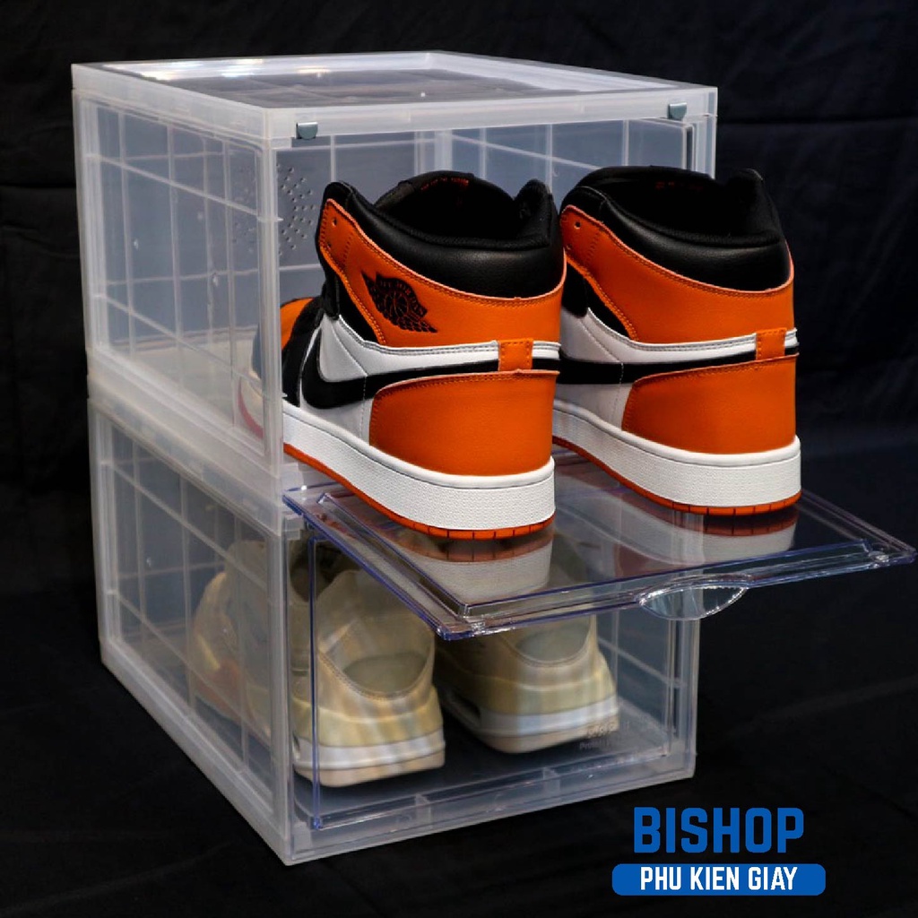 1. Hộp đựng giày bằng nhựa cao cấp, dày và cứng cáp, đảm bảo tốt nhất thị trường hiện tại.