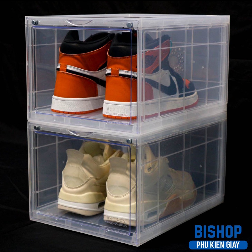 Combo 2 Hộp Đựng Giày Rapbox Nhựa Cứng Trong Suốt Cửa Nam Châm Cao Cấp BISHOP